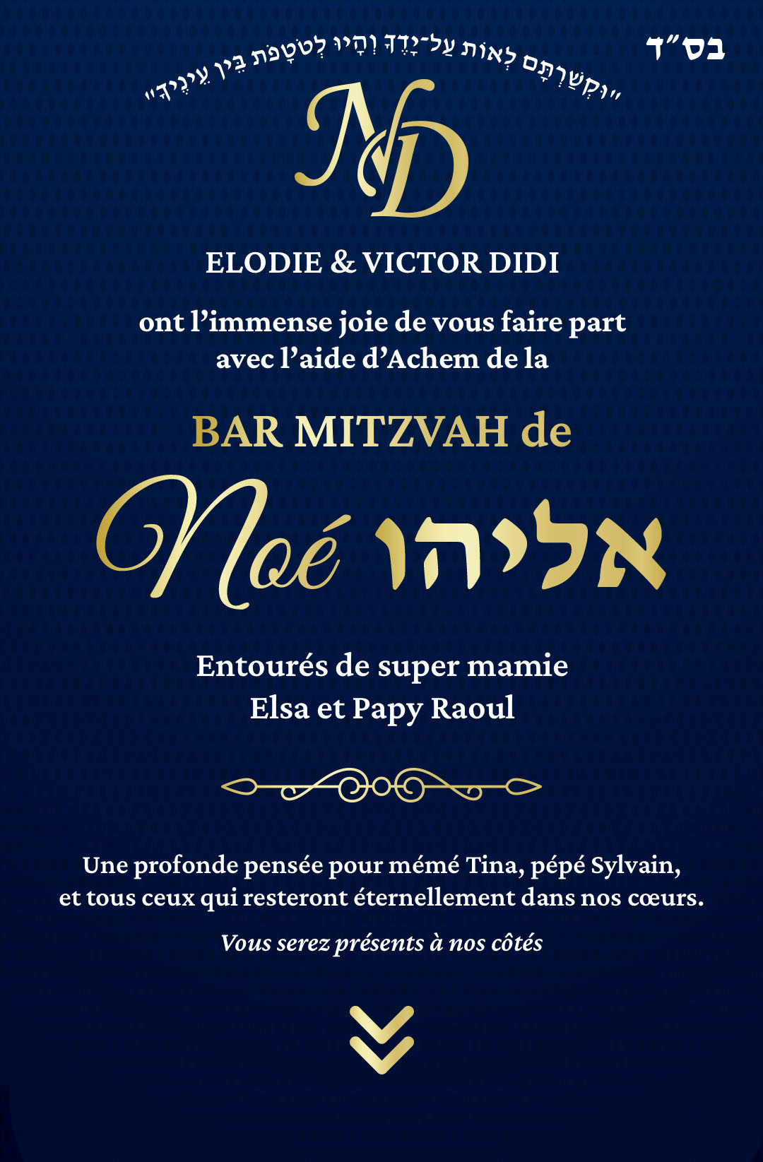 Nous avons le plaisir de vous convierà la Mise des Téfilines de NoéLundi 8 Avril 2024à partir de 8h30au Centre Européen du JudaïsmePlace de Jérusalem 75017 Paris